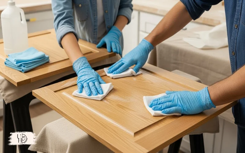 This isn’t optional. I skipped thorough cleaning on my first cabinet project and dealt with paint peeling within six months. Learned that lesson the expensive way.