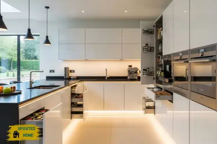 - L-shaped or U-shaped kitchens for efficiency and storage