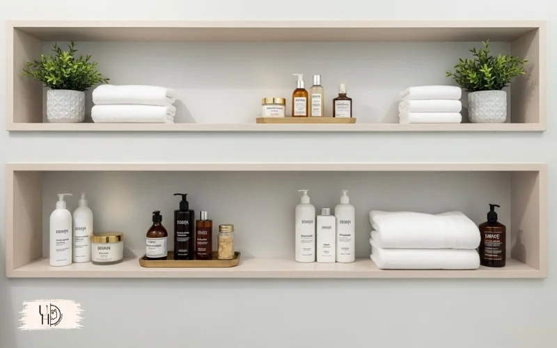 These work perfectly for master bath decor ideas like plants or pretty bottles. Just don’t overload them in modern small bathrooms ideas.