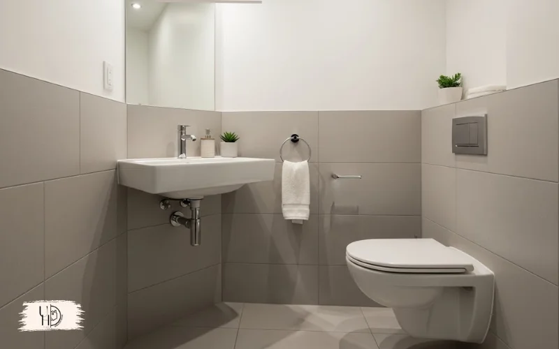This modern bathroom design for small spaces makes cleaning underneath effortless. Perfect for small space bathroom ideas where every inch counts.