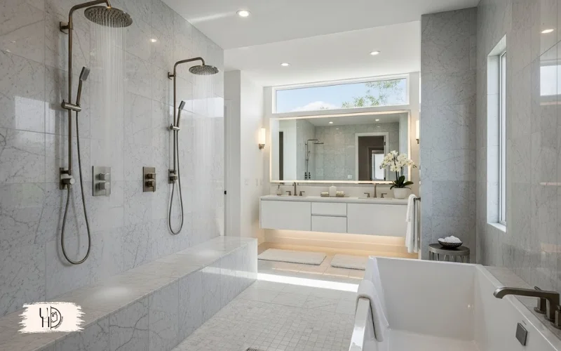 We installed dual shower heads in our master bath layout with tub and shower, and morning conflicts disappeared. Each person gets their preferred temperature and pressure.
