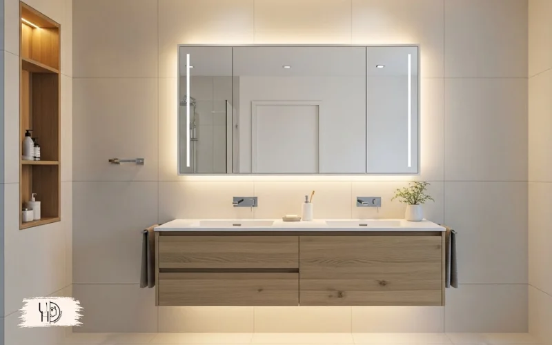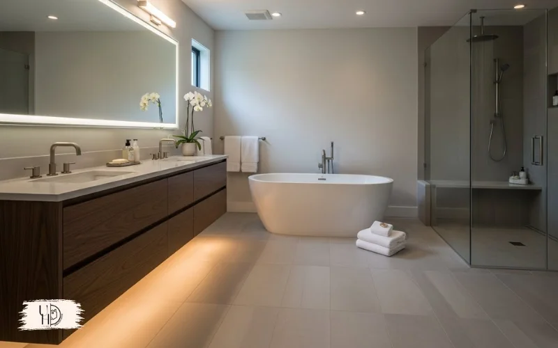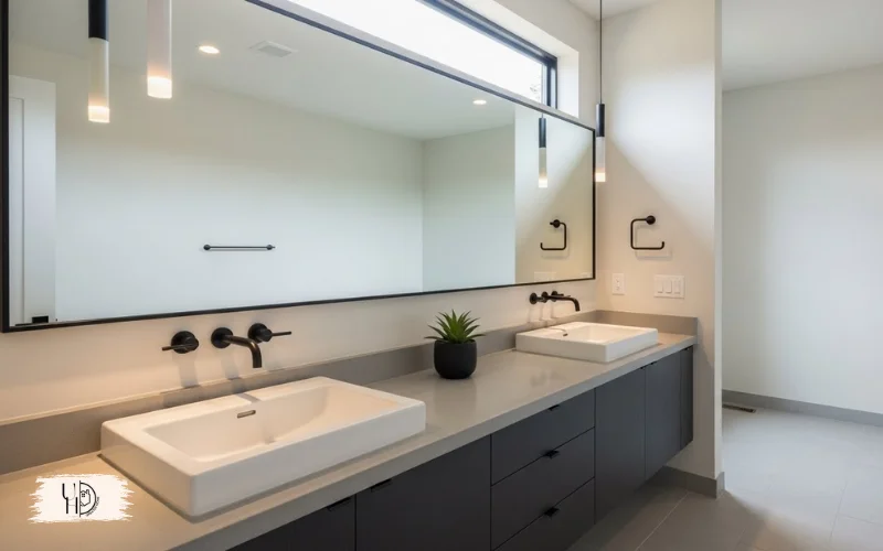 This master bathroom decor trick works especially well in small bathroom modern designs. The continuous reflection eliminates visual breaks that make spaces feel smaller.