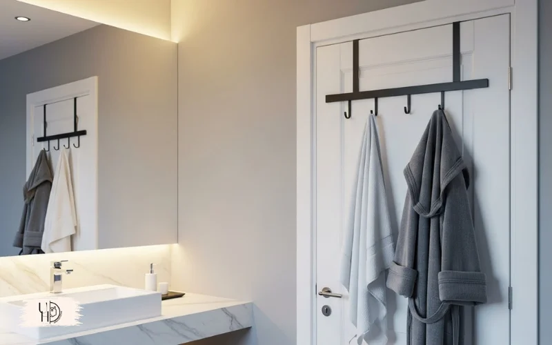 I hung an over-door rack inside my master bathroom door for towels and robes. It’s completely hidden when the door is open.