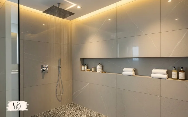 This works best with proper sloping and a master bathroom floor plan with walk-in shower no tub. I added a rain showerhead for that spa-like feel.