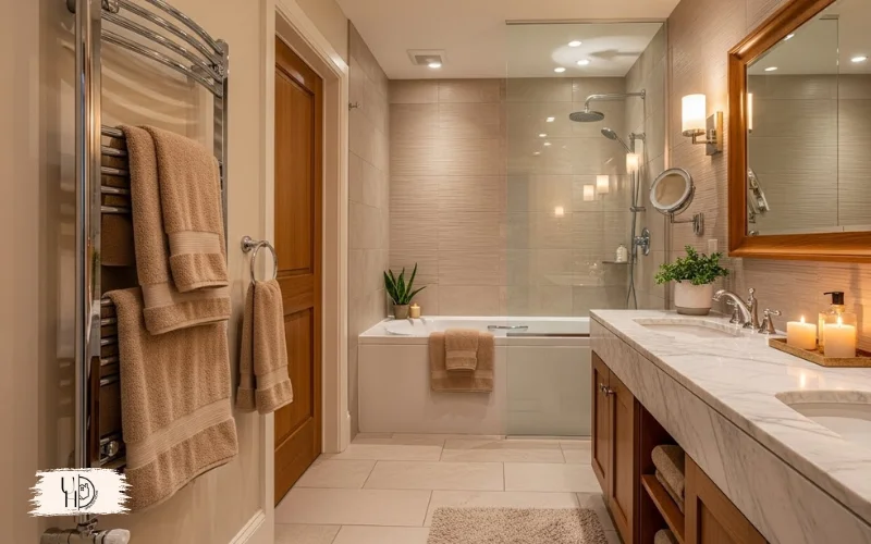 I added a plug-in towel warmer to my small luxury master bathroom ideas, and it feels like a spa. Warm towels on cold mornings are absolutely worth it.